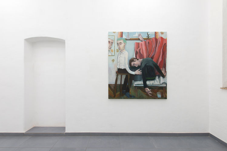 Marie Jacotey (1988, Paris) is a Marseille based artist. She graduated from the Royal College of Art in London (2013) after graduating from the École Nationale Supérieure des Arts Décoratifs in Paris (2011). Jacotey’s work draws inspiration from the gathering of people together, the expression of emotions in their many and varied interactions and the contexts and details in which these engagements take place - architecture, landscape, or place; picking out wallpaper, furniture, clothes, and zooming in further to detail pattern, patina, texture... Her works – though insistently manual in their making: paintings on plaster and dust sheets, pencil drawings, soft pastel on Japanese paper, sewing and fabric - make use of perspectives that reference the world of cinema and slow-mo, the photographer’s point and shoot.
