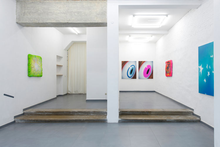 The title of the show, “Baby, I’m not even here. I’m a hallucination.” suggests the idea of multiple realities - a proposition felt in the illusory abstraction of the works. It also suggests the idea of reality monitoring; in the exhibition eyes are disassociated from the body, sometimes stand-alone, sometimes embedded into a bodiless background of a painting that looks like a rock wall or a piece of side-walk. The eyes in this exhibition are ever-present; watching, looking - anonymous. Techniques of blurring paint and the use of spirals are as commonplace as the presence of eyes in the show. With all of these motifs together, Nokukhanya deftly presents a self-referential as well as a timely and allegorical exhibition.