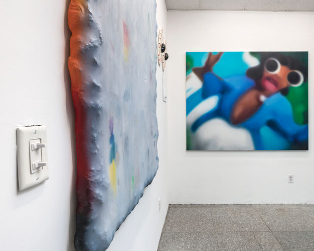 The title of the show this past March, Baby, I’m not even here. I’m a hallucination suggests the idea of multiple realities—a proposition felt in the subversive abstraction of the works. It also suggests the idea of reality monitoring; in the exhibition eyes are disassociated from the body, sometimes stand-alone, sometimes embedded into a bodiless background of a painting that looks like a rock wall or a piece of side-walk. The eyes in this exhibition are ever-present; watching, looking—anonymous and anxious. Techniques of blurring are as commonplace as the presence of eyes in this body of work. With all of these motifs together, Nokukhanya deftly presents a self-referential as well as a timely and allegorical exhibition.